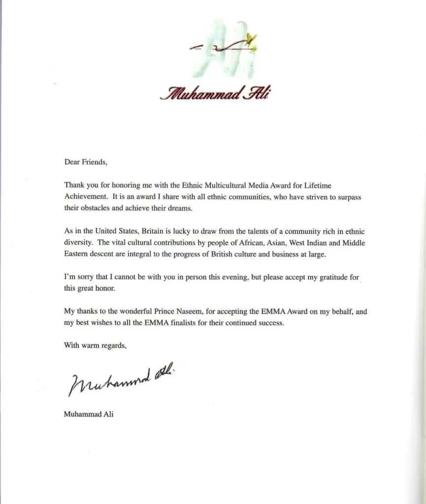 EMMA has recognised and celebrated some of the world’s most iconic Multicultural figures with our EMMA Lifetime Achievement Award. Recipients of the award included Muhammad Ali, who in 1999 supported our initiative with the following statement, “As in the United States, Britain is lucky to draw from the talents of a community rich in Ethnic Diversity.” Other EMMA Lifetime Achievement award winners have included Nelson Mandela (2000), Lord Richard Attenborough (2001), Ray Charles and Maya Angelou (2002), and Stevie Wonder (2003), among others.